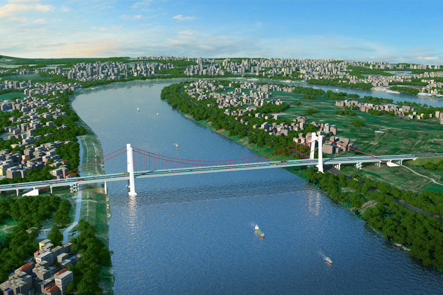 Twin-tower self-anchored suspension bridge,Main span 150m