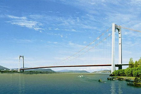 江津中渡長江大橋,全長1738米,主橋橋型為懸索橋,...