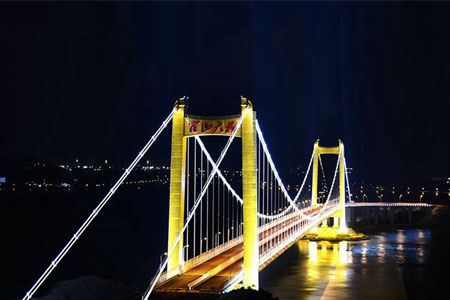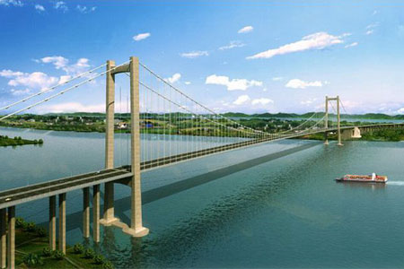 贛江公路大橋長1073米(含引橋),主橋采用的是先進(jìn)的雙塔單跨地錨式懸索橋設(shè)計(jì),...