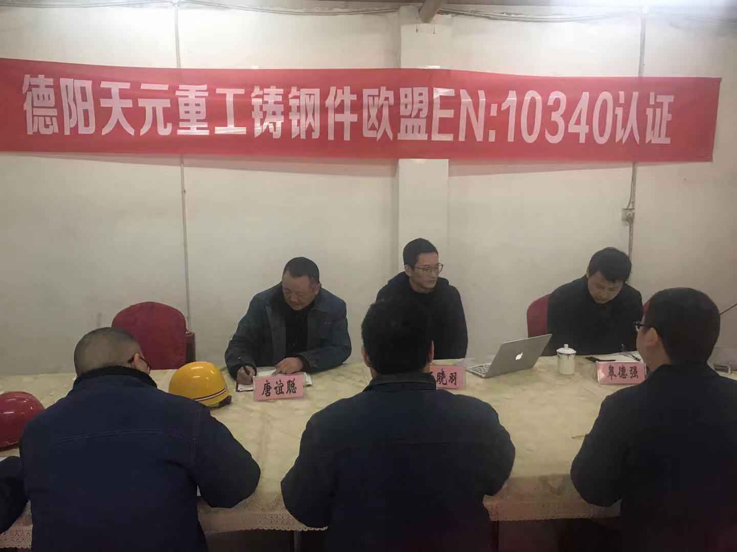 2019年1月5日,經(jīng)過為期兩天的現(xiàn)場審核,德陽天元重工股份有限公司完成了歐盟EN:10340鑄鋼件CE認(rèn)證,主要包括生產(chǎn)現(xiàn)場和試驗(yàn)認(rèn)證。為了不斷提高公司的管理水平,公司董事長和總經(jīng)理及各級(jí)領(lǐng)導(dǎo)高度重視,全員積極參與體系建設(shè),順利完成了現(xiàn)場審核。